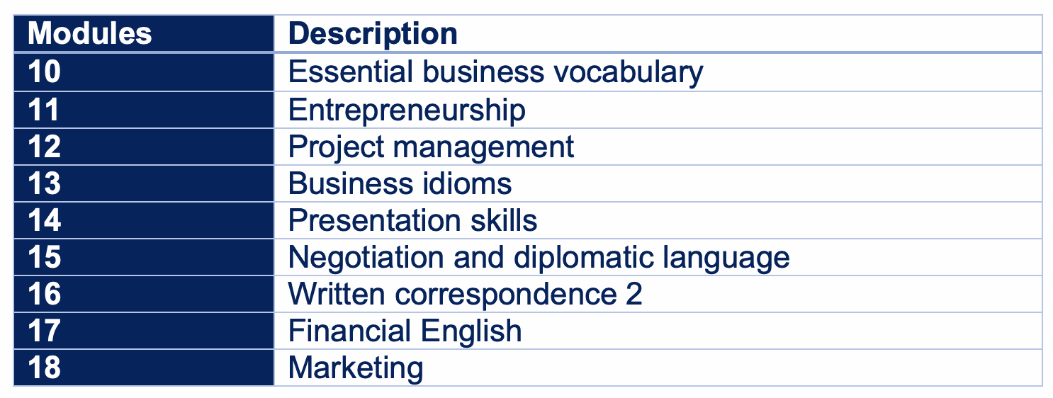 eLearning Mini-Kurs: 9 Module zum Thema „Business in English“ Teil 2